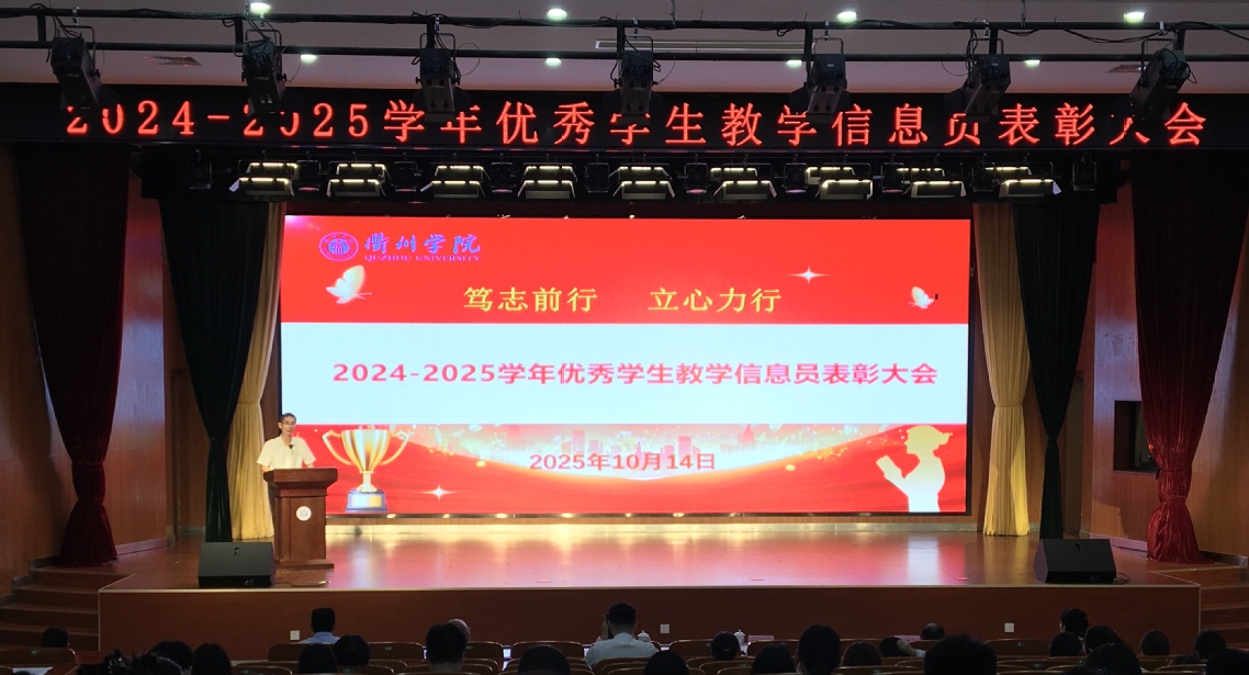 10月14日下午,学校召开优秀学生教学信息员表彰与新生学生教学信息员培训大会。全体学生教学信息员、校教学督导组全体成员、质评中心、教务处相关负责人参加会议。副校长、党委委员江爱民出席会议并讲话。 会议对65位2024-2025学年“优秀学生信息员”进行了表彰,会上,优秀学生教学信息员代表作了发言,与大家分享自己的工作经验和对教学信息员工作的感悟。新生教学信息员代表也在随后的发言中表示要向优秀看齐,立足岗位、明确职责,认真做好相关工作,向学校反馈最真实、最客观的信息。 江爱民充分肯定了学生教学信息员上学年开展的教学信息反馈工作,并针对信息员工作提出了几点要求。他表示,学生教学信息员是沟通学校和广大师生的桥梁,全体教学信息员要负起责任,以“坚持实事求是、坚持问题导向、坚持客观精准”的态度把任课老师的教学情况,以及同学们的学习情况、困难、建议等及时反馈到校教学督导组,为学校教学秩序的稳定、教学质量的提高贡献力量。 |